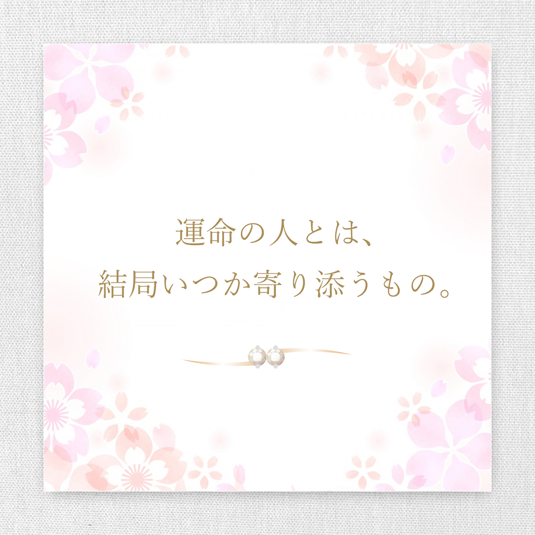 二つのストーンが互いを映し合うように、離れていても寄り添う心をそっと抱きしめるリング。運命の絆を感じるたび、ふたりの愛が静かに深まっていきます。