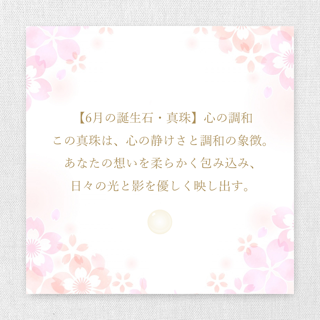 6月に生まれたあなたのために、そっと仕立てた特別なリング。誕生石・真珠が宿すのは、心の静けさと調和の輝き。やわらかな光であなたの想いを包み込み、日々に映る光と影を静かに映し出してくれます。
