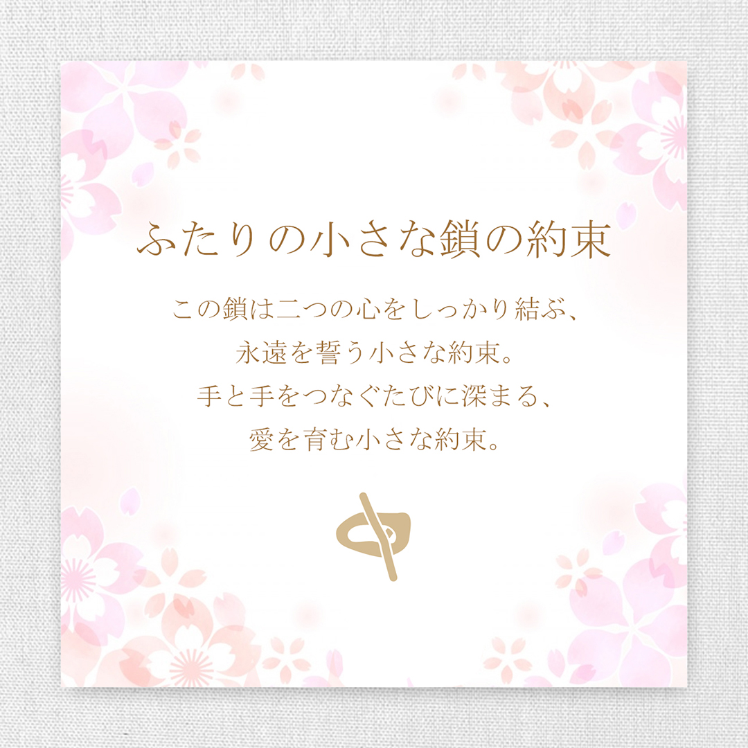 ふたりの小さな鎖の約束ブレスレット――この小さな鎖は、ふたりの心をしっかり結び、永遠を誓う優しい約束。手と手をつなぐたびに想いは深まり、愛を静かに育んでいく。目には見えない絆をそっと形にした、ふたりだけの特別な物語を刻むブレスレットです。