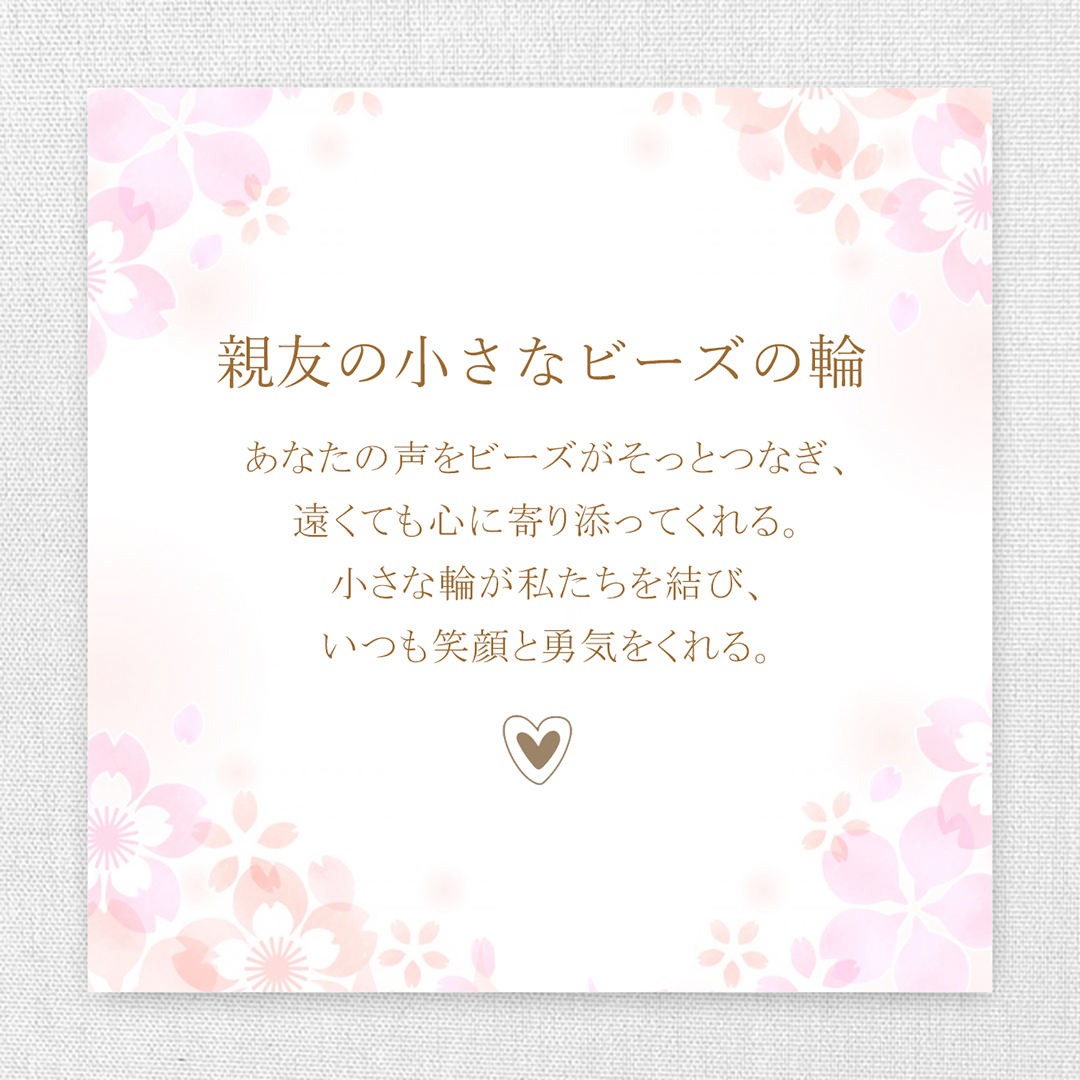 親友の小さなビーズの輪イヤリング——あなたの声をビーズがそっとつなぎ、遠く離れていても心はいつもそばに。小さな輪が私たちをやさしく結び、笑顔と勇気をそっと届けてくれる、友情のかたちです。