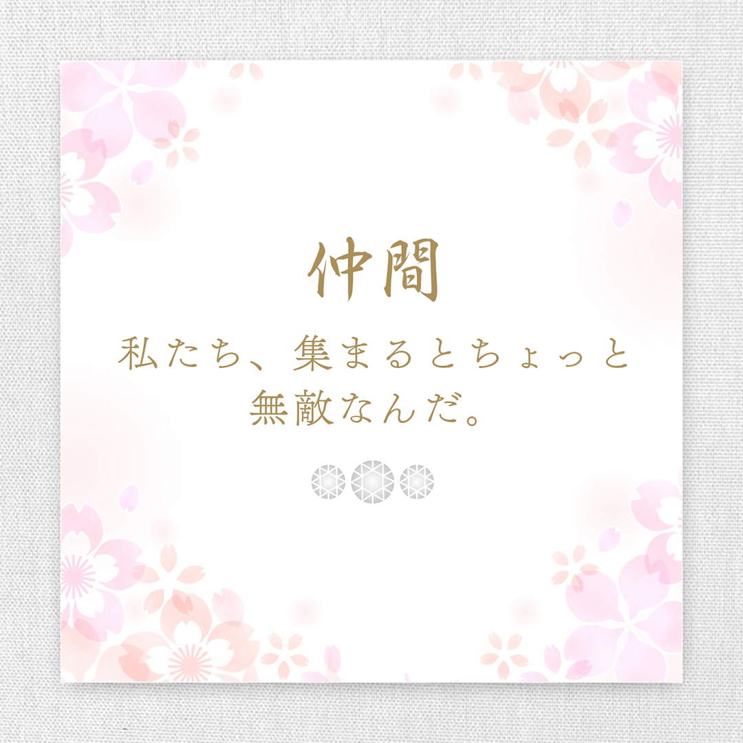 「私たち、集まるとちょっと無敵なんだ。」そんな仲間との絆を、さりげなく胸元に。輝くダイヤモンドが、共に笑い、支え合い、乗り越えてきた日々をそっと照らします。大切な人との“無敵な”絆を、このネックレスに込めて。